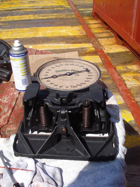 This is a Health-O-Meter bathroom scale model 6 which was manufactured in 1922. Has cast iron parts and weighs 23 lbs.
